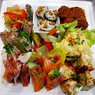 ・サーモンマリネ ・生ハム ・豚肉テリーヌ ・ピクルス ・しいたけチーズ詰